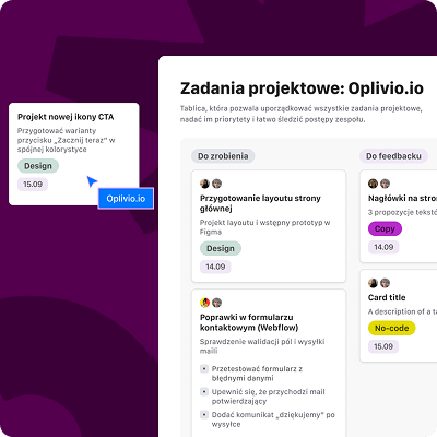 Jedna przestrzeń, gdzie widzisz postęp prac i kontrolujesz zadania, dzięki czemu zarządzanie projektem staje się prostsze.