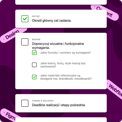 Zaczynamy od briefu, który pozwala doprecyzować oczekiwania i nadaje każdemu zadaniu jasny kierunek działania.