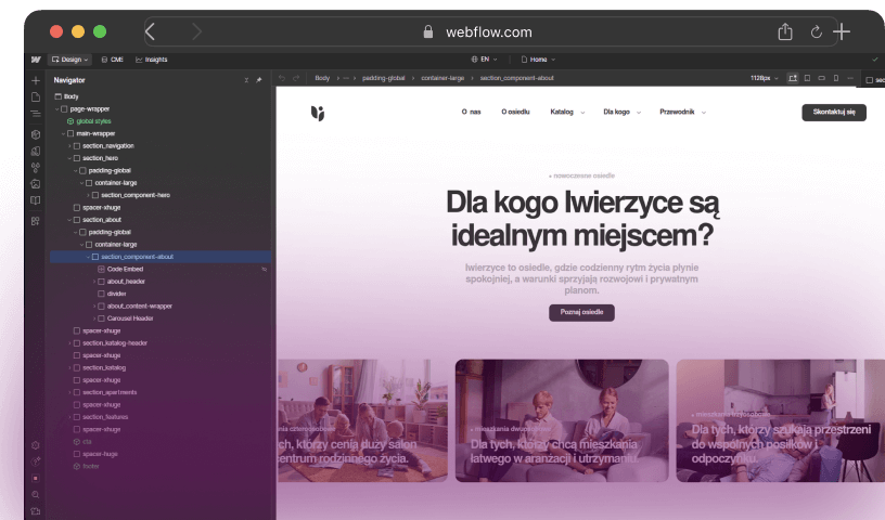 Elastyczne wsparcie Webflow, no-code i design.