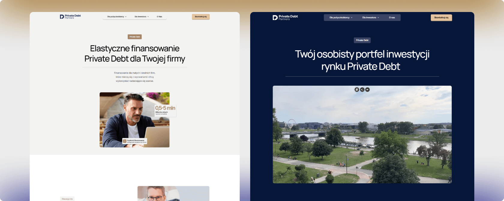 Private Debt Partners to firma doradczo-inwestycyjna, która łączy inwestorów z przedsiębiorstwami szukającymi finansowania poza sektorem bankowym. Wcześniej funkcjonowali na dwóch oddzielnych stronach – jednej skierowanej do inwestorów i drugiej do pożyczkobiorców. Każda z nich działała osobno i komunikowała się z inną grupą odbiorców, ale obie miały bardzo prostą strukturę i zachowawczy design.